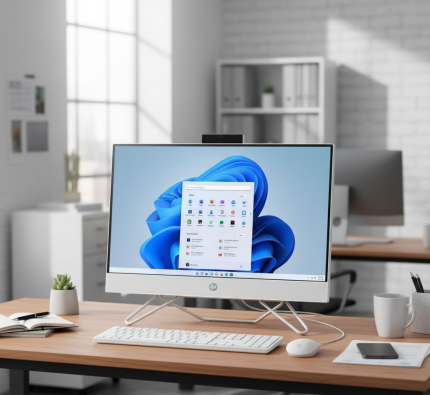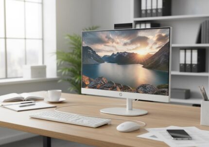 L’ordinateur HP All-in-One 27″ avec processeur Intel Core i5 de 13ème génération est un PC de bureau élégant et performant,